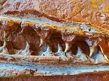 La corona dental de los dientes maxilares eran lisas, sin presentar algún tipo de ornamentación en su esmalte. La especie R. sorbinii es conocida por un único espécimen, y se diferencia de la anterior por la forma diferente del hueso frontal, por el número menor de dientes en el maxilar (13) y por la presencia de ornamentación en el esmalte dental.[1]