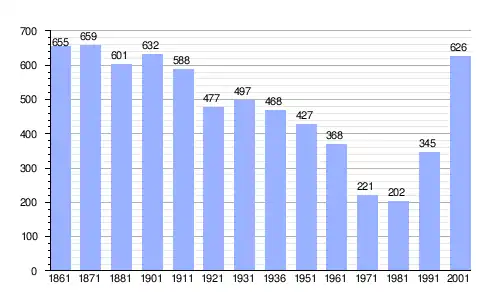 | Gráfica de evolución demográfica de Roncaro entre 1861 y 2001 |