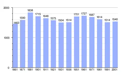 | Gráfica de evolución demográfica de Ronco Biellese entre 1861 y 2001 |