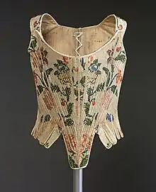 En el siglo XIV, las mujeres ya usaban el cotte, una tela rígida debajo del corpiño para aplastar el pecho como prenda interior femenina, con ballenas, sin mangas, atado con cordones y terminado en haldetas para ajustar la cintura. Hasta el siglo XVIII, las mujeres usaban una camisa de lino ajustada con mangas larga hasta debajo de las rodillas y debajo una enaguas, con el cotte o cotilla, una prenda interior emballenada que ceñía el torso por encima.[8]