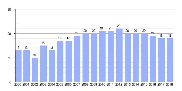 | Gráfica de evolución demográfica de Roque entre 2000 y 2018 |
