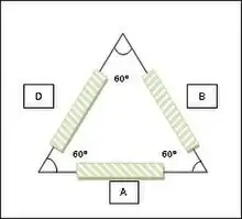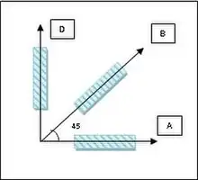 Una roseta se dice que es rectangular cuando sus galgas están arregladas con una diferencia de 45° entre sí, por lo que una roseta se encontrará en posición horizontal, una en posición vertical y otra a un ángulo de 45°.