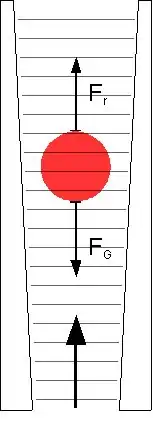 Un caudal volumétrico más alto a través de un área determinada aumenta la velocidad de flujo y la fuerza de arrastre, por lo que el flotador es empujado hacia arriba. Sin embargo, como el interior del rotámetro tiene forma de cono (se ensancha), el área alrededor del flotador a través de la cual fluye el medio aumenta, por lo que la velocidad del flujo y la fuerza de arrastre disminuyen hasta que se establece un equilibrio mecánico con el peso del flotador.[1]
