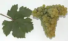 Uva y hoja de la variedad de vino blanco Rotgipfer