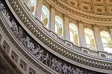 Ocupa la banda inferior de las 36 ventanas. Se trata de un fresco con 19 escenas de la historia de Estados Unidos. Brumidi las diseñó en 1859 pero no se empezaron a pintar hasta 1878. Brumidi pintó 7 escenas y una parte de otra, mientras trabajaba en la escena "William Pell y los indios" cayó del andamio y murió a los pocos meses. Fue terminado por diferentes artistas.