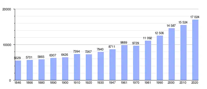 Todos los datos históricos relativos al actual municipio, el siguiente gráfico refleja su evolución demográfica, incluyendo municipios después de efectuada la fusión el 1 de enero de 1977.
