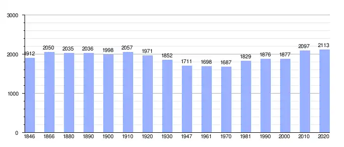 | Gráfica de evolución demográfica de Rouvroy entre 1846 y 2020 |