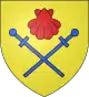 Blasón: Dos zánganos de peregrino de azur pasados en saltire acompañados por un jefe de una concha de gules.