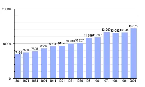 | Gráfica de evolución demográfica de Rovato entre 1861 y 2001 |