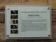 - Esta obra contiene una traducción derivada de «Rudolf Platte» de Wikipedia en alemán, publicada por sus editores bajo la Licencia de documentación libre de GNU y la Licencia Creative Commons Atribución-CompartirIgual 4.0 Internacional.