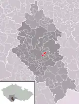 Se encuentra ubicada en el centro-sur de la región, en la zona de la selva de Bohemia, a poca distancia al sur de la ciudad de Praga, de la orilla del río Moldava —el más largo del país, afluente del río Elba— y al norte de la frontera con Austria.[1]