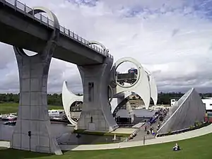 La rueda de Falkirk, llamada así por el cercano pueblo de Falkirk en Escocia central, es un ascensor de barcos giratorio que conecta el canal Forth y Clyde con el canal Unión. Anteriormente los dos canales estaban unidos por once esclusas, pero en la década de 1930 se rellenaron con tierra.