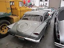 Ambassador by Rambler de 1958 con techo rígido y con tapacubos completo dentro de su compartimento Continental