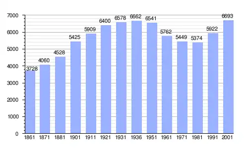 | Gráfica de evolución demográfica de Rufina entre 1861 y 2001 |