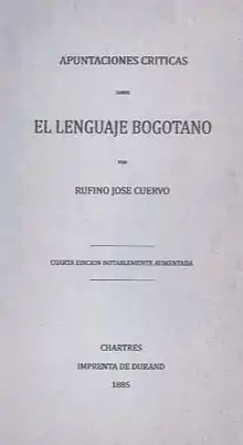 - Cuervo, Rufino José. «Apuntaciones críticas sobre el lenguaje bogotano / por Rufino José Cuervo». www.bibliotecadigitaldebogota.gov.co. Consultado el 2 de enero de 2024.