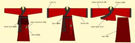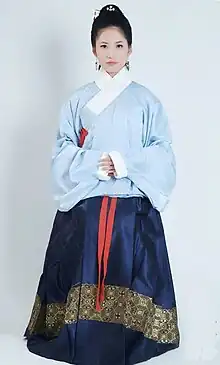 Además de las blusas de cuello cruzado normales, existían las paralelas/cuello recto (對襟), que fueron usadas en este período, exponiendo así la división de los senos. Durante la Dinastía Song el atado de las faldas fue descendiendo hasta la cintura.