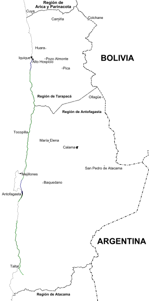 - km 266: límite entre las regiones de Tarapacá y Antofagasta.