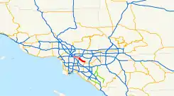SR 39 en La Habra hacia el Norte en la Downey Road en el Este de Los Ángeles. La carretera tiene una longitud de 25,6 km (15.9 mi).[1]