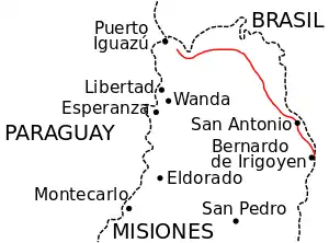 | • sudeste | Bernardo de Irigoyen (26°15′17.1″S 53°38′39.3″O) | ||||||||