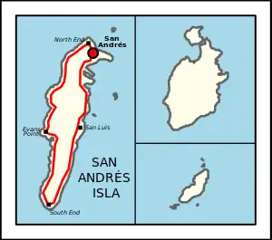 ![]() Carretera del litoral en San Andrés, RN 1 de Colombia | |||||||||