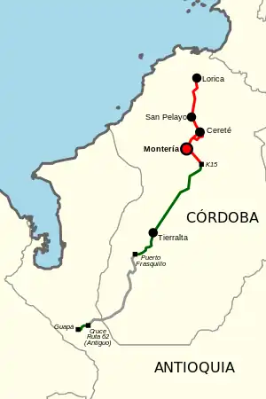 | 2103 | Cereté - Lorica | Concesión ANI | 4G016 | IP - Antioquia - Bolívar[3] | Concesión Ruta al Mar SAS CORUMA SAS | UF 2 (Cereté - Lorica) | Construcción | 10+0764 | 48+0222 | 37,46 |