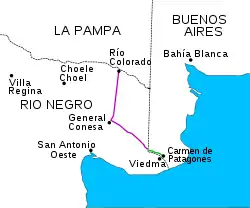 - Partido de Patagones: Carmen de Patagones (kilómetro 0).
