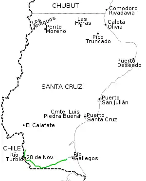 Antiguamente[2] esta ruta tenía 297 km de extensión, desde Río Gallegos hasta el paraje Cancha Carrera, corriendo paralelo a la vía del ferrocarril de Río Turbio. Actualmente este tramo pertenece a la Ruta Nacional 40. Se encuentra marcado en verde en el mapa adjunto.