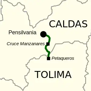 | Manzanares | Campo Alegre (Acceso 17784 a Aguabonita y acceso 17782 a Marquetalia), Llanadas (Acceso 17780 a Las Mercedes); La Esmeralda; Manzanares (Acceso 39CL02 a Marulanda); Cruce Manzanares (Acceso 5201 a Marquetalia); Río La Miel. | ||
