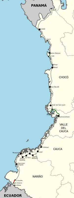 | 0501 | Tumaco | Río Pañambí; Río Mira; Candelillas (Acceso); La Espriella (Cruce 1001 ). | |