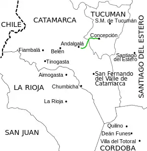 - Departamento Chicligasta: Concepción (kilómetro 0) y Alpachiri (km 19).