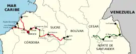 Transversal Puerto Rey - Tibú: (Puerto Rey - Montería); (Cereté - La Ye); (El Viajano - Achí) Transversal de las Américas: (Puerto Rey - Montería) (Santa Lucía - Cocarito) IP Córboda - Sucre: (Cereté - La Ye). | |