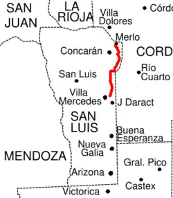 | Localidades en su recorrido | Villa de Merlo, Carpintería, Villa Larca, Papagayos, Villa del Carmen, La Punilla, Punta de Agua y Juan Jorba | ||||||||