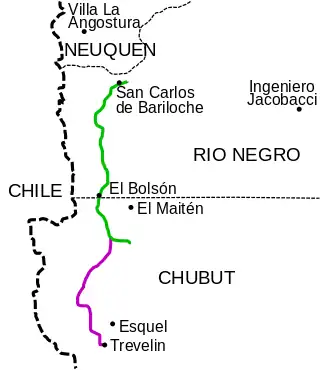 A32 acceso al lago Cholila. A11 acceso a Villa Futalaufquen. A49 acceso a Trevelin por puente Kansas. | ||||||||