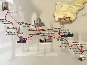 Dependiendo de donde se parta se pueden seguir diferentes rutas. Todas las rutas pasan por Córdoba y Granada, dos tierras importantes de la época musulmana en España.