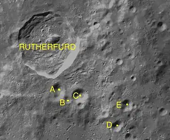 Por convención estos elementos se identifican en los mapas lunares colocando la letra en el lado del punto central del cráter más cercano a Rutherfurd.