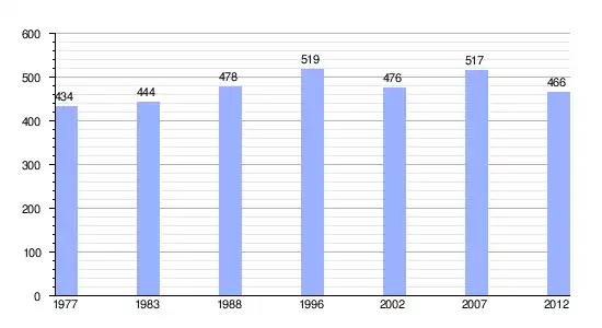 Gráfica de evolución demográfica de Ruutia entre 1977 y 2012