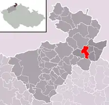 Se encuentra ubicada al noreste de la región, en la ladera sur de los montes Metálicos, cerca del río Elba, de la región de Liberec y del estado alemán de Sajonia.[1]