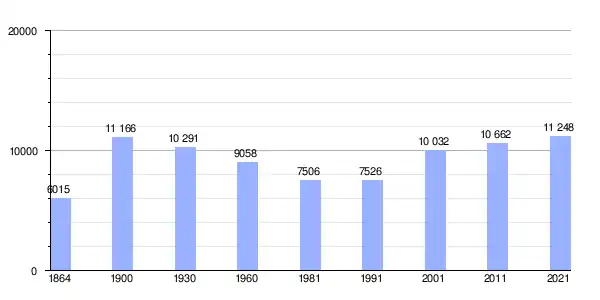 | Gráfica de evolución demográfica de São Brás de Alportel entre 1864 y 2021 |