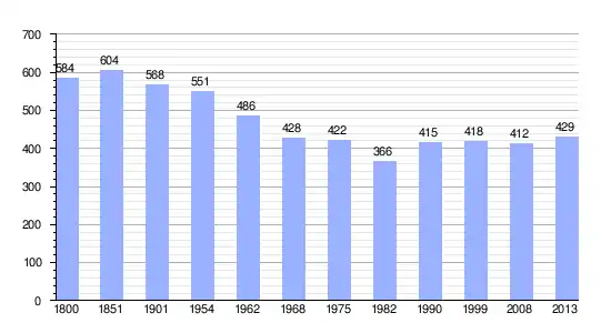 | Gráfica de evolución demográfica de Sévérac-l'Église entre 1800 y 2013 |