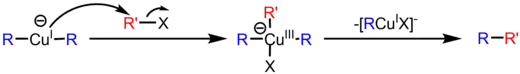- R2CuLi + R'-X → R-R' + LiX + RCu