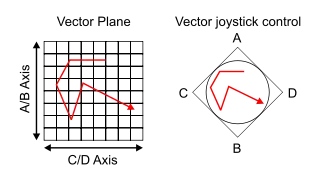 La síntesis vectorial le brinda movimiento al sonido proveyendo cross-fading dinámico entre -típicamente- cuatro fuentes de sonido. Estas cuatro fuentes de sonido son conceptualmente arregladas como los puntos extremos de los ejes X e Y, y son generalmente etiquetados como A, B, C y D. Una mezcla dada de cuatro fuentes de sonido puede ser representada como un único punto, un 'vector plano'. El movimiento de este punto en el espacio es lo que brinda la particularidad sonora de la síntesis. La mezcla es típicamente realizada con un joystick, lo que no quita que también el punto sea controlado utilizando generadores de envolventes o LFOs (Osciladores de Baja de Frecuencia, por sus siglas en inglés).