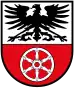 El escudo de armas de la ciudad es un escudo con el campo dividido horizontalmente; el campo superior tiene un águila de negro con una lengua roja, mirando a la derecha. El campo inferior es de color rojo con una rueda de plata de seis rayos.