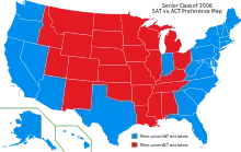 Históricamente, el SAT ha sido usado ampliamente en los estados de la costa, mientras que el ACT ha sido mayormente usado por estudiantes en los estados centrales t del Sur; Sin embargo, en años recientes una gran número de estudiantes de las costas Este y Oeste han comenzado a tomar el ACT.[11][12] Desde el 2007, todas las universidades y colegios de 4 años en los Estados Unidos requieren cualquiera de las dos pruebas como parte de la aplicación para la admisión, y cientos de colegios y universidades no requieren ninguna de las dos pruebas para el proceso de admisión.[13][14]
