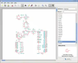 ![]() Imagen de la simulación de un circuito en Oregano, programa que implementa SPICE. | ||