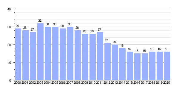 | Gráfica de evolución demográfica de Saa (lugar) entre 2000 y 2020 |