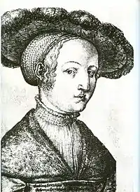 ![]() Retrato de Sabina de Baviera por Barthel Beham. | ||