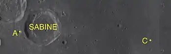 Por convención estos elementos se identifican en los mapas lunares colocando la letra en el lado del punto central del cráter más cercano a Sabine.