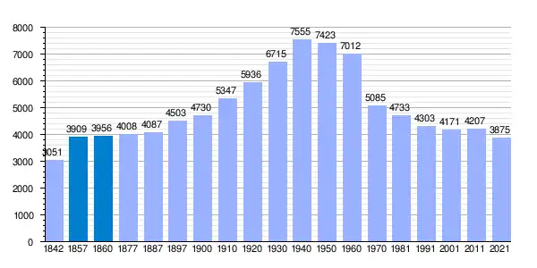 | Gráfica de evolución demográfica de Sabiote[3] entre 1842 y 2021 |