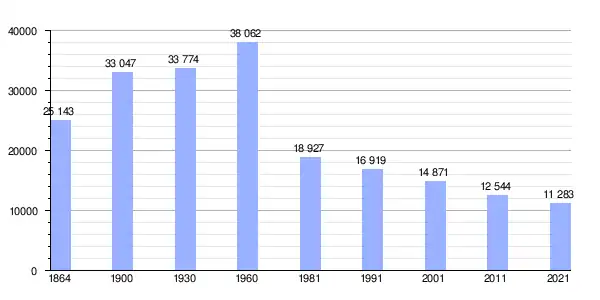 | Gráfica de evolución demográfica de Sabugal entre 1864 y 2021 |