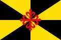 La bandera está gironada en oro y sable con la Cruz de Calatrava en el centro. Fue entregada al municipio por Alicia de Borbon-Parma y Habsburgo-Lorena, infanta de España.